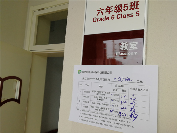 曲江第四小學屬新建校區,開學在即,室內空氣凈化治理,甲醛治理