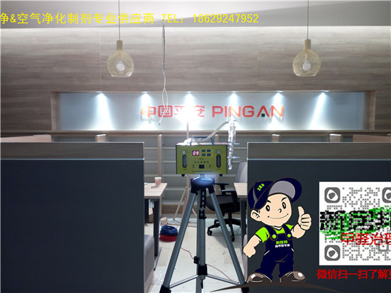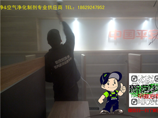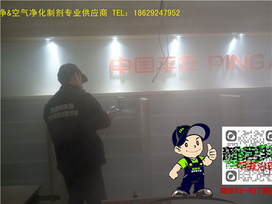 中國平安延安分公司三層辦公大樓共計1500余平方,經過重裝升級,室內裝修異味比較明顯,新居邦除甲醛公司承接了本次室內空氣凈化除甲醛工程,以下是施工現場照片: