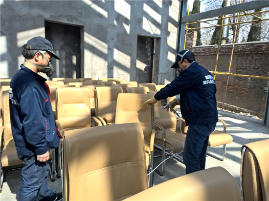 對于第二條就要召開的陶瓷產業會議大廳,由于會議物料帶來的難聞刺鼻異味怎么辦?交給新居邦除甲醛公司來處理。以下就是銅川市政府召開的耀州陶瓷產業座談會物料除甲醛除異味的現場: